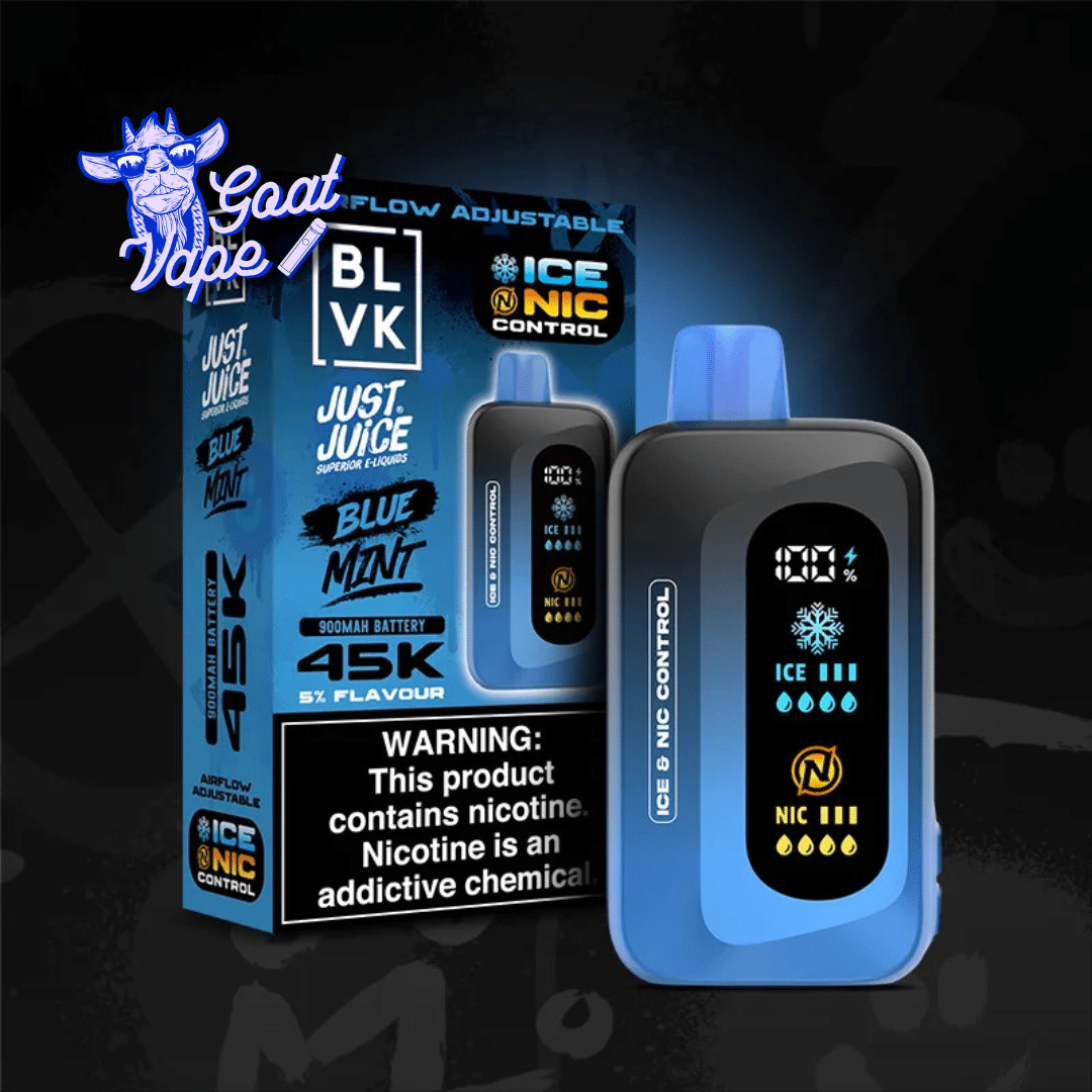 El BLVK Just Juice 45K es un vape desechable de 45.000 puffs con Dual Mesh Coil, airflow ajustable y control de ICE y nicotina en 3 niveles, diseñado para ofrecer una experiencia de vapeo personalizada y de larga duración.