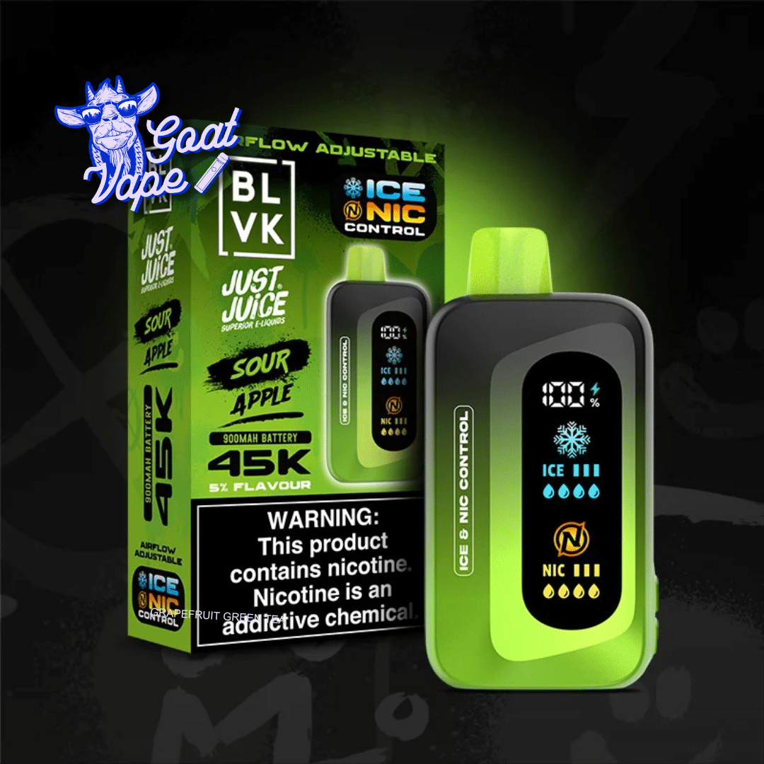 El BLVK Just Juice 45K es un vape desechable de 45.000 puffs con Dual Mesh Coil, airflow ajustable y control de ICE y nicotina en 3 niveles, diseñado para ofrecer una experiencia de vapeo personalizada y de larga duración.